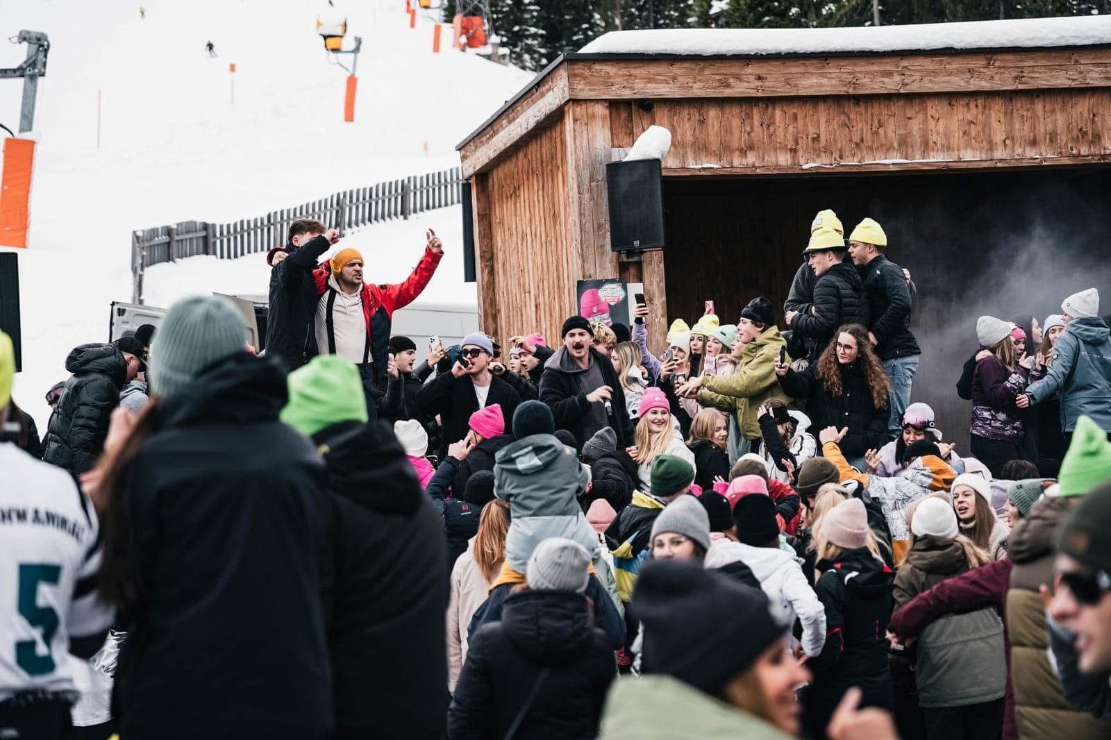 Unser Eventcontainer fügt sich perfekt in die Umgebung ein – mit einer hochwertigen Holzverkleidung, die ideal zur Optik der Skihütte passt. Ob Outdoor-Events, DJ-Sets oder Live-Musik-Auftritte – hier entsteht eine Atmosphäre, die begeistert!